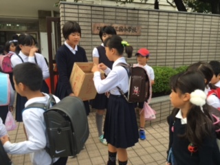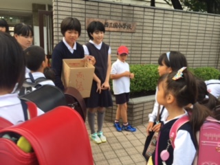 児童会が、今日から3日間登校時に赤い羽根の募金活動を行っています。