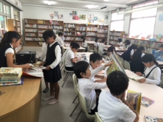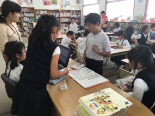 調べたいことや、お気に入りの本を借りて読んでいます。国語科で「ごんぎつね」を学習するので、新美南吉さんの本を集めています。