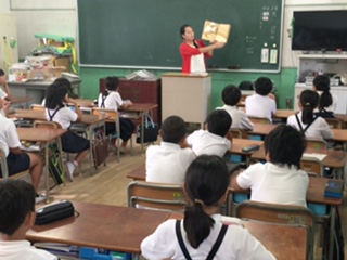 低学年のお話会でした。図書ボランティア「ほうせんか」の皆さんが、子どもたちの顔を思い浮かべながらいろいろな本を用意して読んでくださいました。