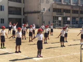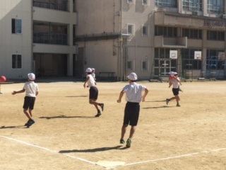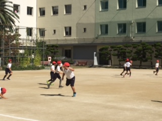 キックベースボールをしています。暑くなっていい汗をかきました!!