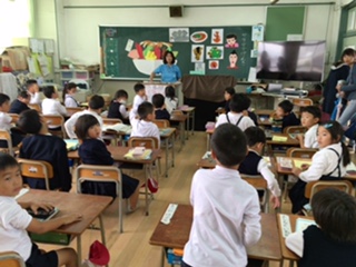 国語科の「サラダでげんき」を学習しました。動物たちのおすすめの野菜などを順番に確認したり、歌を歌いながら内容を確認したりして、お話の世界を楽しみました。
