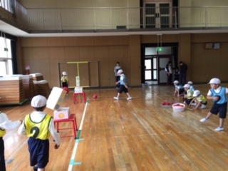 普段はなかなか当てることが難しかった子も、今日は2つに重ねた段ボールを一度に倒すことができ、大喜びでした!また、友達の良い投げ方もお互いに見合い、認め合いました。こうすればうまくいくよという投げ方を、実際にやって見せていました。