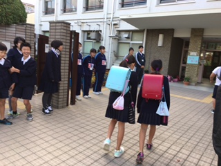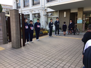 朝のあいさつ運動も小学生と一緒にしてくれています。今日は、大学生のインターンシップも。