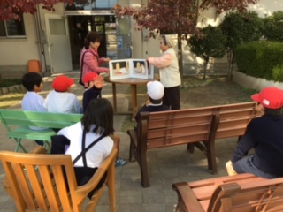 図書ボランティアさん達が、昼休みに中庭で読み聞かせをしてくださいました。図書室では、図書委員会児童が読み聞かせをしていました。昼間は暖かく、ゆったりと本の世界に浸りました。
