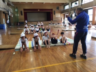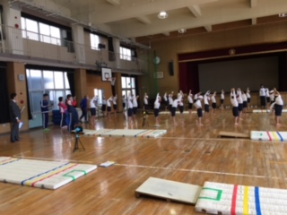5時間目、3年2組でマット運動の授業を全市公開しました。子どもたちは、緊張しながらも前転、後転についてしっかりと学び合いました。