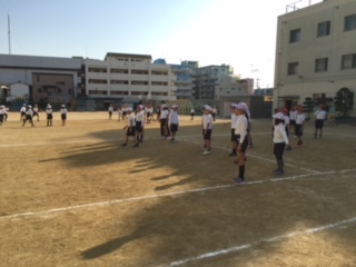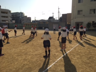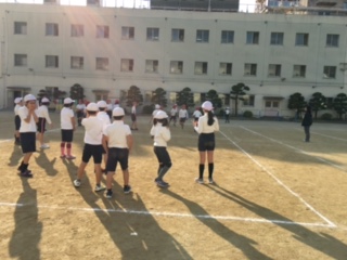 ドッジボールをしました。友達の頑張りに対して、あたたかい言葉をかけています!