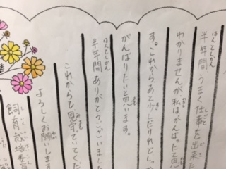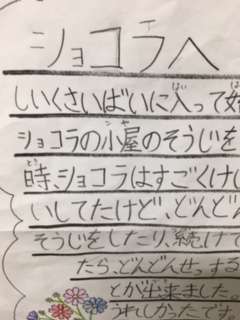 飼育栽培委員会の子どもたちが、しよこらひ手紙を書きました。職員室前に掲示しています。ショコラは、西三国小の子どもたちの心にいつまでも残っていくことでしょう。