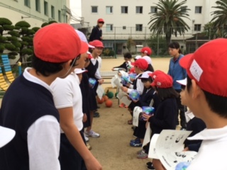 飼育栽培委員会の子どもたちが、「学校を花で美しくしましょう」と呼びかけ、各学級に1つずつヒヤシンスの水栽培セットを手渡ししました。