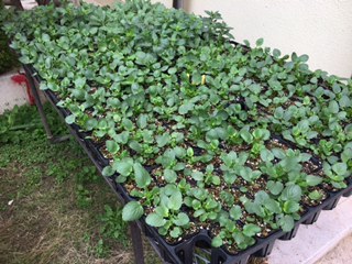 9月12日に種を蒔いたパンジーが、大きく育ってきました。花苗ボランティアさん、十三公園事務所の方の応援を受けて、今日は自分の鉢に植え替えをしました。