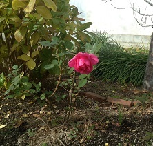 すっかり冬景色となった校庭の片隅に、一輪のバラの花。管理作業員さんが、丁寧に世話をしてくれているおかげです。夏の花ペチュニアもまだ咲いています。(抜いてしまうのはかわいそうと植え替えてくれました。)子どもたちへの思いと同じように、草花も大切に育ててくれています。ありがとうございます。