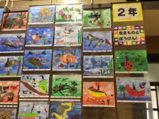 1年生は紙版画に挑戦!2年生は動物について図書室で調べ、それを表現したものと自分の写真をコラージュ、3年生は「もちもちの木」の話を読んで、イメージ豊かに表現しました。
