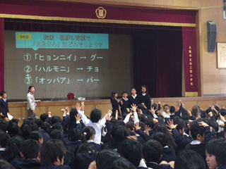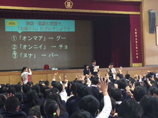 3年生は、韓国・朝鮮の言葉からの出題でした。「お姉さん」「お兄さん」という言葉はなんというかという問題で、答えがそれぞれ2つずつあることにみんなはびっくりしました!