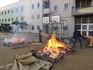朝7時から、お父さんたちがかまどの準備をしてくださっています。
