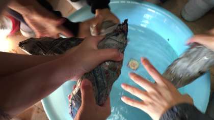 新聞紙に包んで水で濡らし、アルミホイルで巻きます。