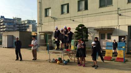 先週実施したドッジボール大会の結果発表と表彰式を行いました。