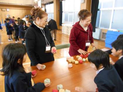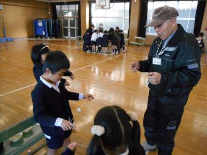 15日、9時から講堂で「むかしあそびのかい」をしました。