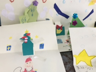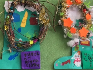 生活科でクリスマスやお正月のカード、飾りを作りました。年中行事にふれ、気づいたことや感じたことなどをかさ表現できると日々の暮らしが豊かになるような気がしますね。