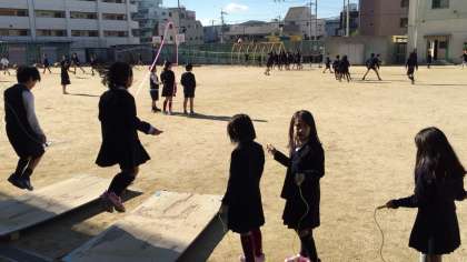 風は冷たいですが、休み時間には子どもたちは元気いっぱい遊んでいます。