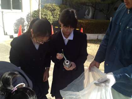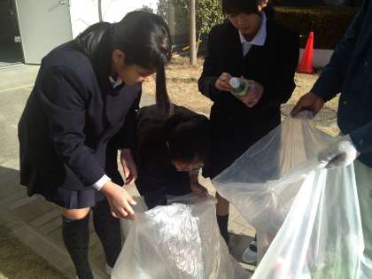 休み時間、管理作業員さんが、ペットボトルのラベルをはずしていると、5年生の女の子たちが手伝ってくれました!ありがとう!