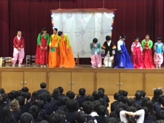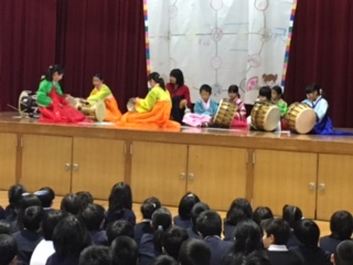民族クラブの時間にみんなで練習してきた曲を披露しました。「みんなすごかった」「クラスの友達が、がんばっていてびっくりした」「かっこよかった!」「演奏が早い動きでびっくりした」などの感想がフロアからありました。みんなとってもよく頑張り、ステキでした。