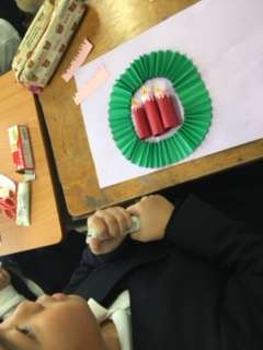 クリスマスの飾りを作っています。