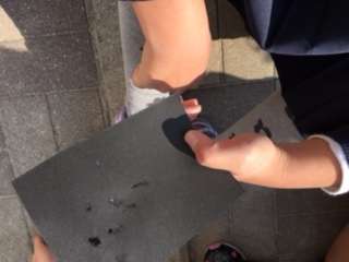虫眼鏡を使って光を集め、黒い紙を焦がしました。光が集まると明るくなること、小さな光でも物を燃やすことができることがわかりました。