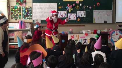 3時から、いきいき活動でクリスマス会が行われました。楽しみにしていた子ども達が、70名程参加していました。「浦島太郎」が玉手箱を開けたらサンタクロースになったり、葉加瀬太郎ではなく、葉加瀬小太郎が登場して演奏したり歌ったり。大いに盛り上がりました!