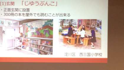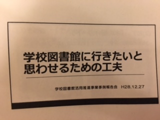 27日、中央図書館で学校図書館活用推進事業事例報告会がありました。各校に図書館補助員が、週1回配置されて1年が経ちました。本校でもM先生が図書館を開館したり、整備や調べ学習の支援などをしてくださっています。コーディネーターのNさんも月1回応援に来校、アドバイスをしてくださっています。今日はその活動の報告会があり、本校の取り組みも紹介してくださいました。