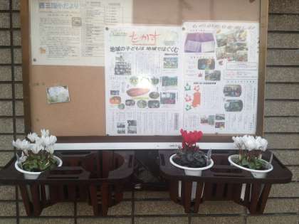 先週も、正門横の掲示板の下に、ガーデンシクラメンの鉢を家から買ってきて、飾ってくださっていました。気持ちがほっと和むうれしい空間でした。