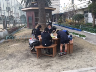寒さにめげず、宿題などをして帰る子どもたちは元気いっぱいです。風邪をひかないようにね!