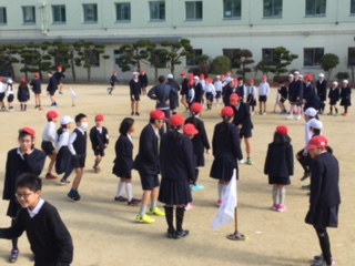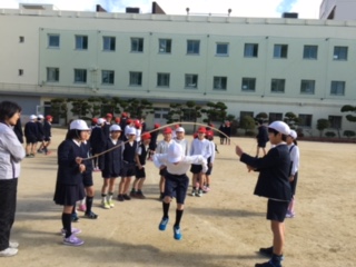 たてわり班で15分休みに大縄に挑戦です。高学年の跳び方をよく見てマネをしたり、優しい声かけに跳べるようになった1年生もいます!