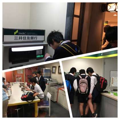 貯まったお金を銀行に預金、ATMも体験しました。集英社のブースで、漫画の編集体験も。