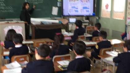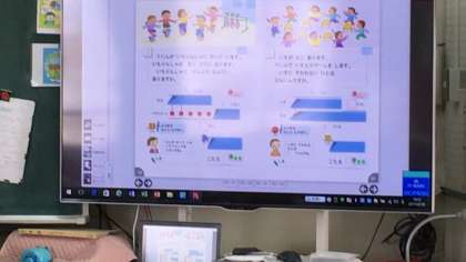 お話問題を絵をかいて考えています。出てきた数字がどの部分に当たるのか、言葉で説明もしています。デジタル教科書を使っての説明もしています。
