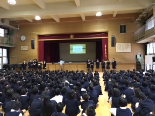 新聞掲示委員会の児童が「新聞ができるまで」と題して、活動の様子を発表しました。取材や記事にする時、構成など色々工夫したり苦労していることもよくわかりました。