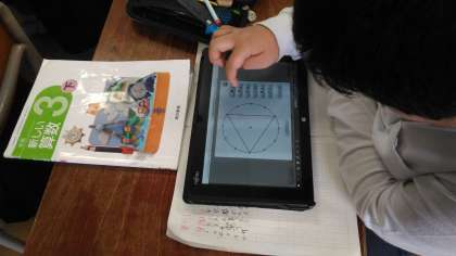 タブレットを使って、いろいろな三角形を作りました。作った三角形は形ごとに分けました。大きさは違っても形は同じものがあることがわかりました!