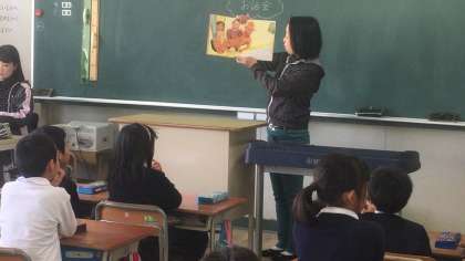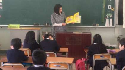 2年生の教室では、3クラスそれぞれ違うお話でした。しっかり聞いてお話の世界に浸っています。