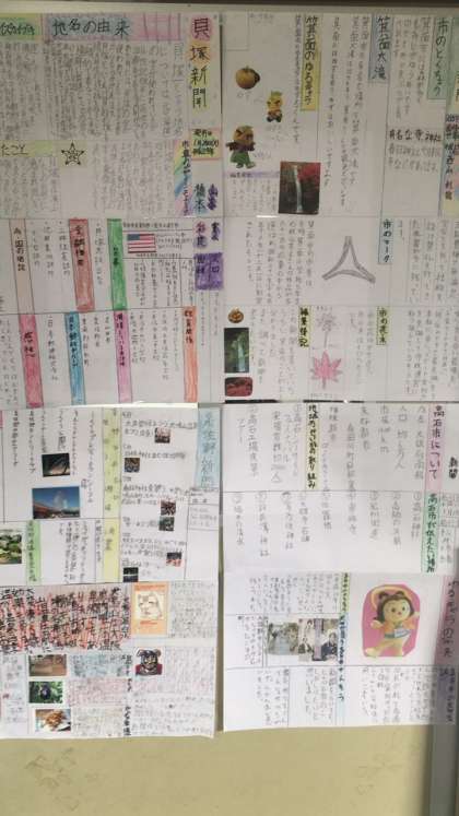 大阪府内の市に子どもたちが手紙で依頼して、特産物や市の特長などを教えてもらいました。それを新聞にまとめています。