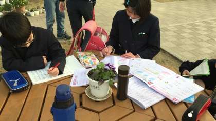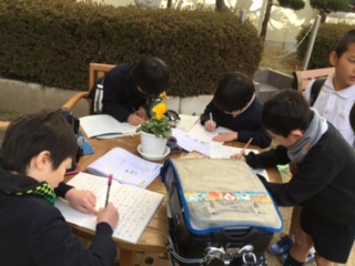 寒さにもめげず、宿題や自主勉強をしている子ども達です!