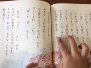 「スイミー」で、場面の様子や登場人物の気持ちなどを読み取っています。