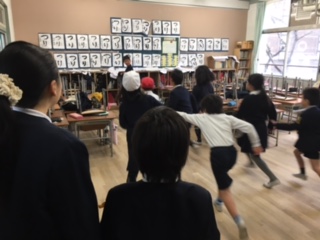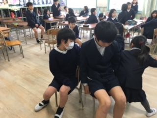 だるまさんがころんだ、椅子取りゲームなど、真剣です!5年生が、中心になって進めていきました。こうやって西三国小学校のたてわり班活動が、受け継がれていきます。