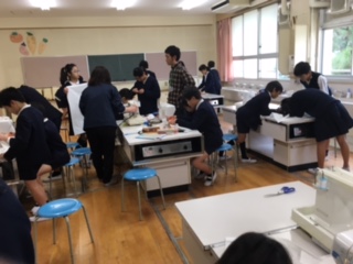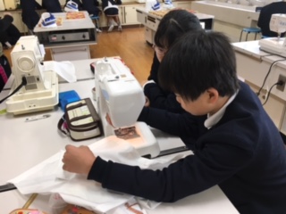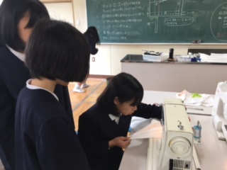来年度のたてわり班の旗を、作っています。白い布の四方をミシンで縫っています。4月になって新しいたてわり班が左スタートしたらこの布にそれぞれの班のキャラクターなどを描いて1年間使います。これも西三国小学校の良き伝統です。