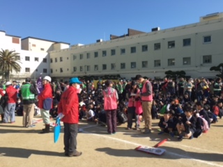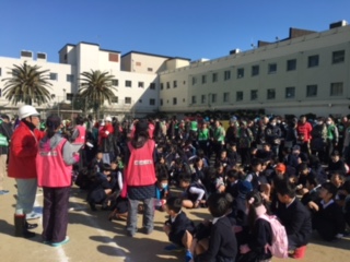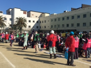 学校へ着いたら町会長さんが受付で人数を報告。全ての町会が揃いました。