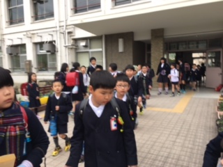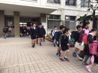 地区児童会の後、新班長を先頭に、集団下校をしました。