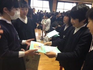 たてわり班の6年生にお祝いのメッセージを贈りました。それぞれ楽しかったこと、お世話になったことなどの思いを込めて書いています。