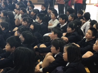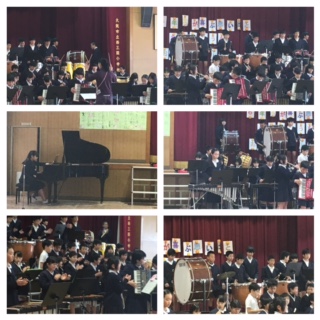 6年生から、在校生にお礼の演奏です。「さすが6年生!」「すごかった!!」「来年僕らもできるかな」(5年)などの声。アンコールもあり、感動のうちに卒業生を祝う会を終えました。