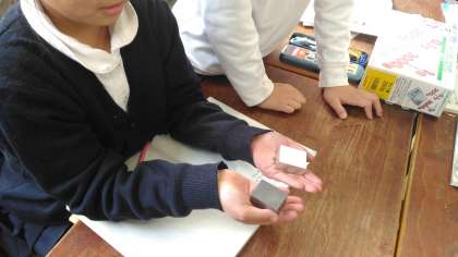 同じ体積のものはどんなものでも同じ重さかを調べました。
