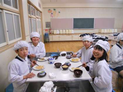 5年生は2月3日に2組が、そして4日に1組が調理実習をしました。