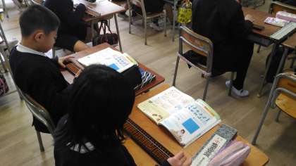 そろばんの学習をしています。初めてそろばんに触れる子もいますが、意欲的に取り組んでいます。小数の足し算や引き算にも取り組みました!