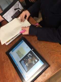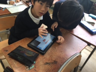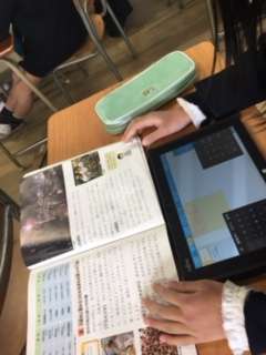 タブレットを使って大阪の祭りについて調べ、プレゼンテーションを行います。