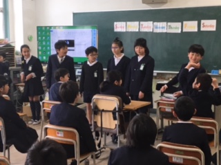 昨日は、今年度最後のフォニックスの時間でした。モジュールの授業と合わせているので、発音がきれいです。ボランティアの子ども達が、前に出て英語の文字を、体で表現しています!